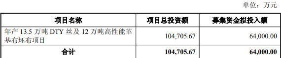 本次向特定对象刊行股票召募资金总数不跨越64,000.00万元,扣除刊行用度后将一皆用于年产13.5万吨DTY丝及12万吨高性能革基布坯布样式。