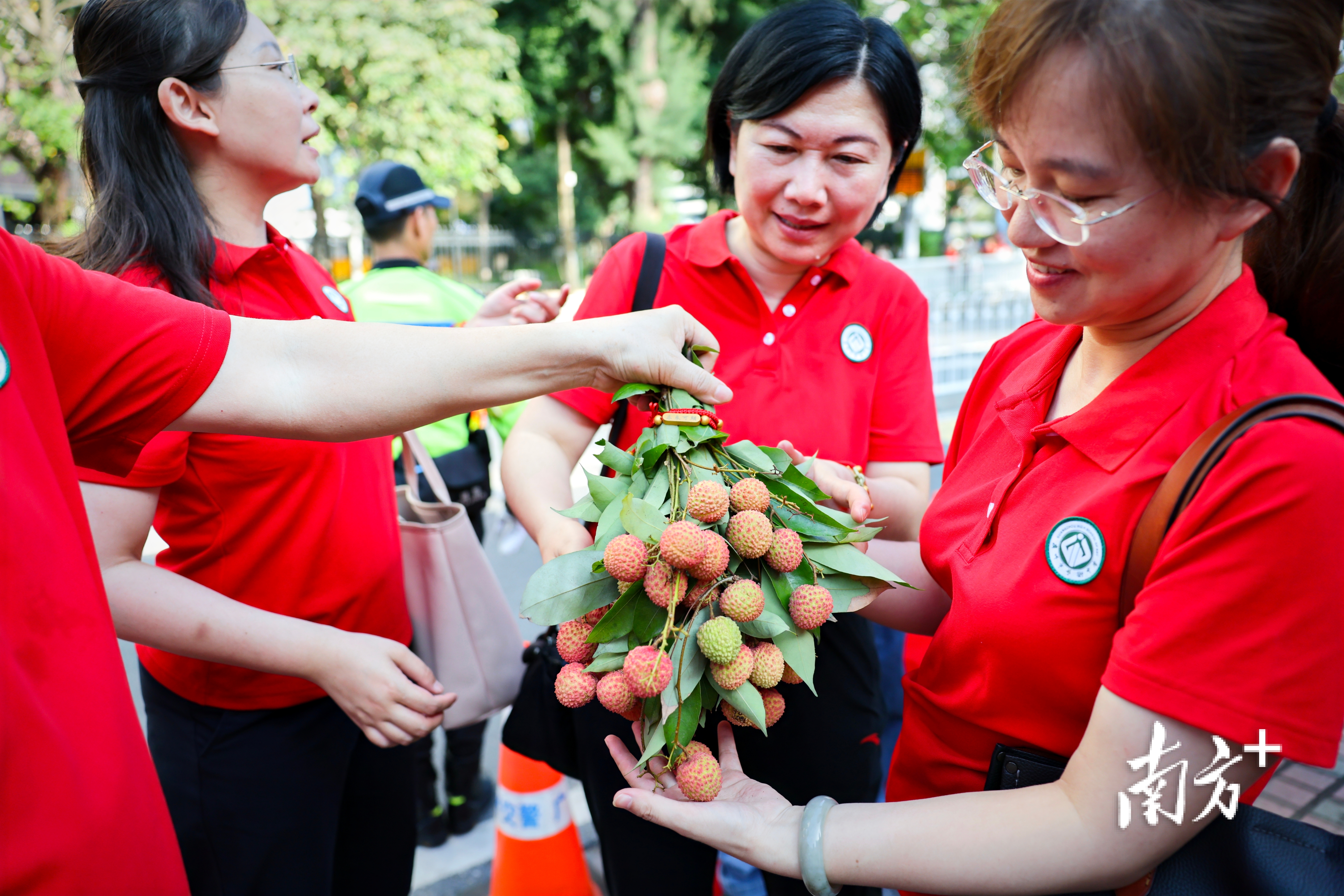 有学校老诚带来桂味荔枝寓意“折桂”。