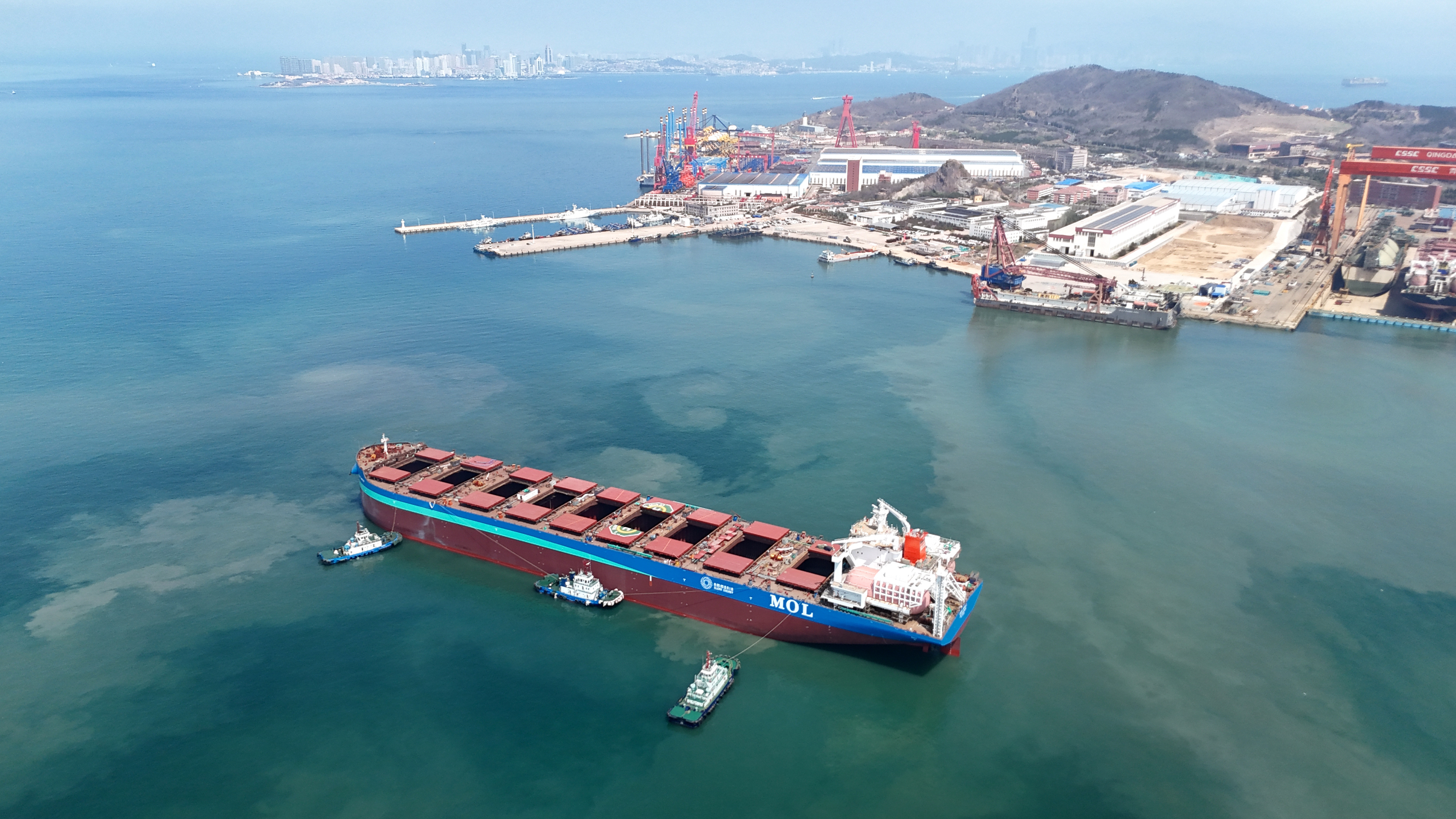 4月13日,由中国船舶集团青岛北海造船有限公司开拓的21万吨绿色燃料船舶在办完手续后,出海试航。据了解,北海造船现在在建船舶25艘,手抓订单达90余艘,其中绿色燃料船舶占比超九成,部分船舶交船期已排至2030年。