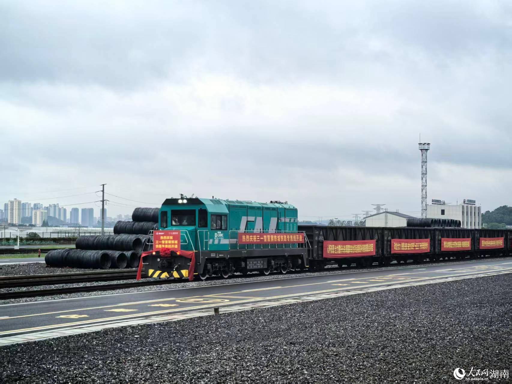首辆专列鸣笛动身。东说念主民网记者 匡滢摄东说念主民网株洲4月23日电 (记者匡滢)22日,湖南省株洲市荷塘区三一灵敏钢铁城铁路专用线崇拜洞开运营,宣告这条全长10.41公里(园区一期铺轨5.22公里)的铁路专用线崇拜融入国度铁路网。这条邻接国度铁路主线、年策划糊涂量达600万吨的“钢铁动脉”的投用,为湖南乃至中部地区先进制造业的强链、补链、延链注入了全新能源。
